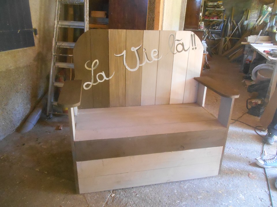 fabrication d'un ilot central en bois de palette, teintes naturelles aux pigments, finitiornaturelle